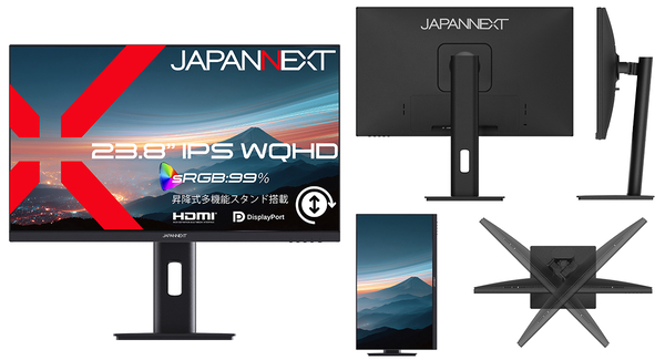 JAPANNEXT、23.8インチWQHD IPSモニターを発売 昇降スタンド付きで2.5万円台
