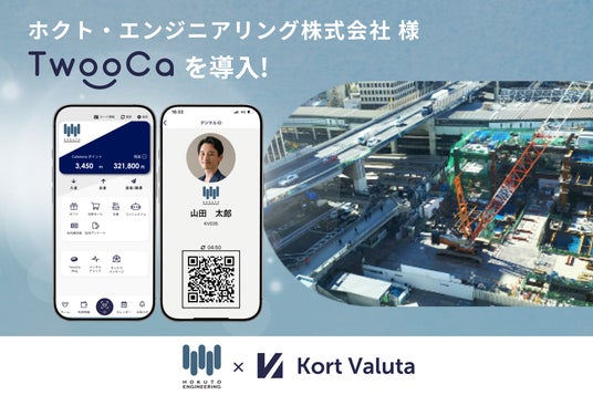 株式会社Kort Valuta(本社:東京都渋谷区、代表取締役:柴田秀樹、以下「当社」)は、ホクト・エンジニアリング株式会社(本社:東京都葛飾区、代表取締役:石井金徳、以下「ホクト・エンジニアリング」)へ、福利厚生の一元化および従業員の健康管理の高度化を目的として、次世代型*1ウォレット「TwooCa(ツウカ)」を提供し、導入されたことをお知らせします。