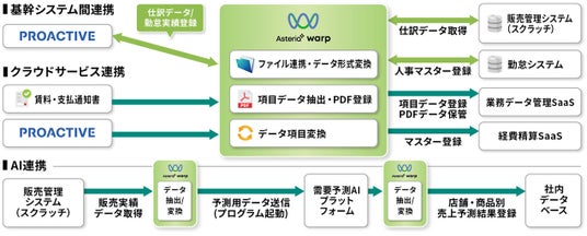 アステリア株式会社(本社:東京都渋谷区、代表取締役社長:平野 洋一郎、証券コード:3853、以下 アステリア)は、企業データ連携(EAI/ESB)製品の国内ソフトウェア市場で19年連続シェアNo.1※1を継続している「ASTERIA Warp」(アステリア ワープ、以下Warp)により、音楽ソフト販売やイベント運営をはじめとした多様な事業を展開するタワーレコード株式会社(本店:東京都渋谷区、代表取締役社長:嶺脇育夫、以下 タワーレコード)の基幹システム「PROACTIVE」や各種クラウドサービスと、需要予測AIプラットフォームを横断するデータ連携基盤が構築されたことを発表します。