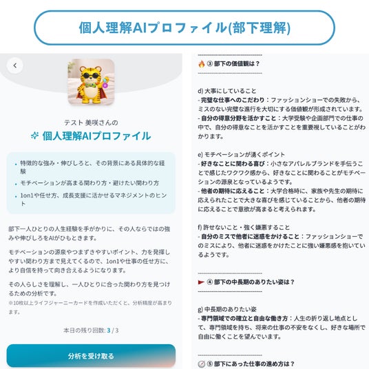 代表コメント多くのマネージャーは、部下を理解し育成したいと思いながらも、日々の業務に追われるなかで、一人ひとりを深く知るための時間や手段を持ちにくいのが実情です。