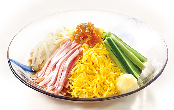錦糸玉子、胡瓜、もやしナムル、ロースハムに加え、中華くらげを盛り付けた一品です。具材の食感や彩りに配慮し、醤油ベースの味付けで、暑い季節でも食べやすい仕上がりとされています。