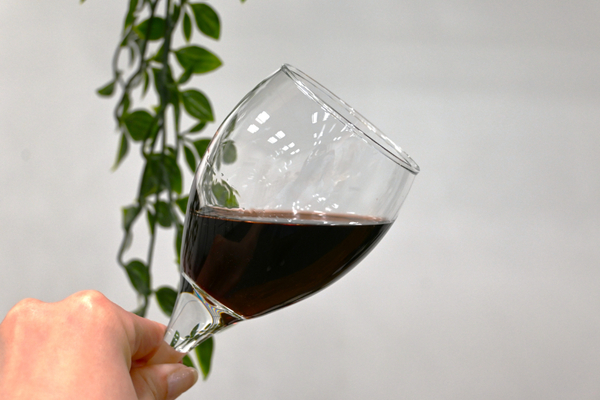 グラスに注ぐと、色は深みのある鈍色。光にかざすと、奥にルビーのような赤がのぞいています。