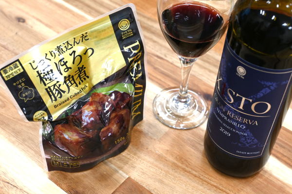 「ジスト グランレゼルバ」にはファミマルの商品だと、「じっくり煮込んだ極ほろっと豚角煮」がおすすめとのことです。少し甘みのある料理と相性がいいんだとか。