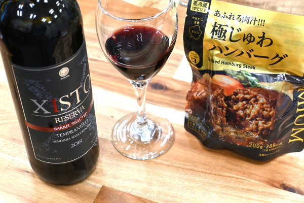 「ジスト レゼルバ バレルセレクテッド」にはファミマルの「あふれる肉汁!!!極じゅわハンバーグ」が相性いいそうです。