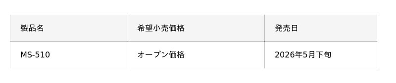 キヤノンは、低照度性能を向上した超高感度カメラの新製品として、約320万画素1.0型の新SPAD(※1)センサーを搭載した“MS-510”を2026年5月下旬に発売します。