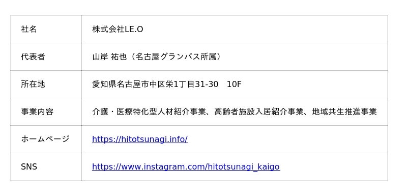株式会社LE.O(愛知県名古屋市、代表:山岸祐也)は、2026年4月より新サービス「ひとつなぎ」の提供を開始します。名古屋グランパス所属の現役プロサッカー選手である代表が手がける、介護人材紹介と入居者紹介の両事業を持つことで初めて実現できる、独自の情報連携モデルです。「適合度の見える化」により、施設・求職者・入居者それぞれのミスマッチを事前に解消し、従来サービスでは届かなかった精度のマッチングを目指します。