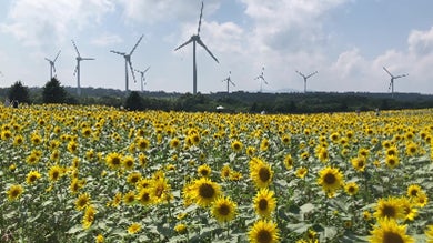 標高約1,000mの高原に約20万本のひまわりが咲き誇る、夏の大人気観光スポットです。巨大な風車と黄色い絨毯のようなひまわり、猪苗代湖のパノラマ絶景が同時に楽しめます。