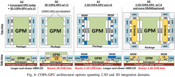 (d) (c)の構成でMSMにL3も追加する構成。当然MSMの大きさは(c)よりも大型化すると思われる(そこで上下にHBMをさらに追加する案まで出ている)。
