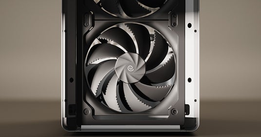 搭載済みの180mmファン(H18 Case Version)は厚さ40mmのハイパフォーマンスモデル。最大164.63CFMの大風量でPC内のエアフローを最大化します。背面の140mmファン(H14 Case Version)も厚さ30mmと、一般的な25mmよりも厚いモデルを採用しています。