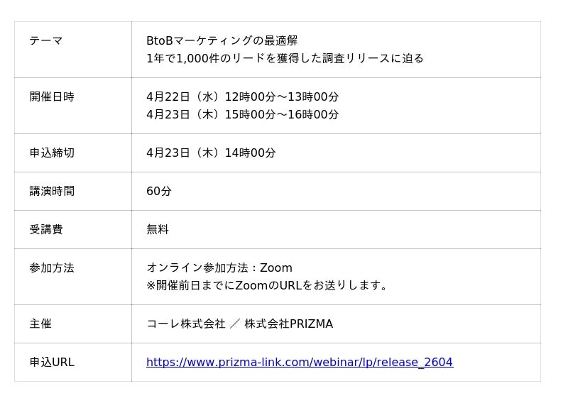 本セミナーでは、コーレ社が実践した調査リリース戦略の全体像を公開します。