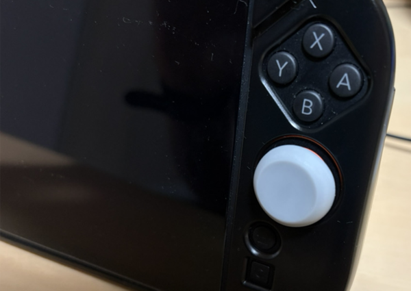 また、外側と内側で異なる硬度のシリコンを使用した独自の二重構造を採用することで、アナログスティックにしっかりホールドするとのことです。実際に試してみたところ、私が不器用なせいなのか取り付けるのはちょっと手間がかかりましたが(といっても1分くらい)、装着できたあとはしっかりとホールドして、ぽろっととれるということもありませんでした。