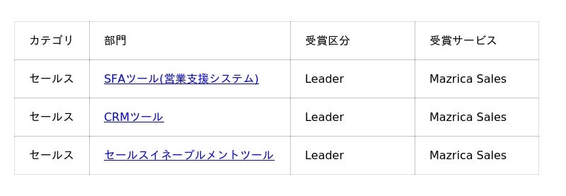 ■ 営業活動を一元化する「Mazrica Sales」の受賞カテゴリ