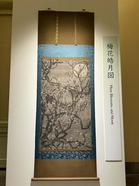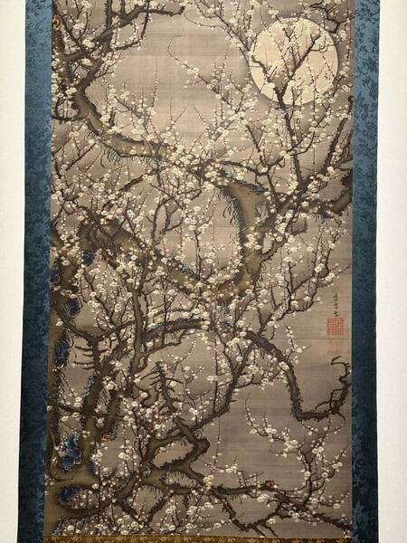 梅花皓月図(ばいかこうげつず) 月夜に浮かぶ白い梅の花。原本では見えにくい微細な枝振りが手に取るようにわかる。