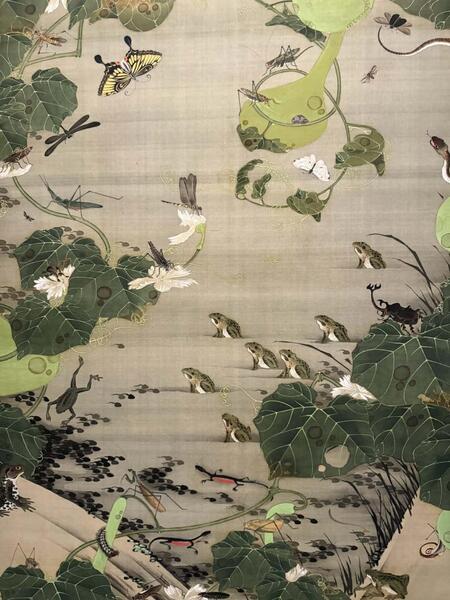 池辺群虫図(ちへんぐんちゅうず) 数十種もの生き物が潜む。濁りの中に描かれたヘビやカエルの息遣いまで追える。