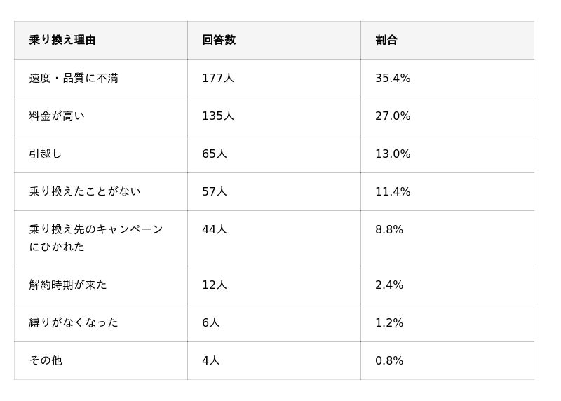 ・乗り換え理由は「速度・品質に不満」35.4%が1位