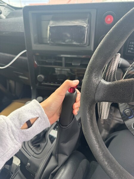今回のラリーでは、縦引きタイプのパーキングブレーキを導入。タイトなコーナーやジャンクションでもしっかり使うことができ、今回のステージではかなり活躍してくれました。