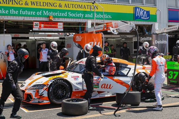 日曜日の決勝レースは、山下がスタートを担当。序盤からトップ進出を狙ったが、相手は38号車「KeePer CERUMO GR Supra」の大湯都史樹ということで、そう簡単にチャンスは作れず。それでも冷静に対処して後半スティントで逆転をするために、38号車との間隔をできる限り縮めようとしたが、GT300クラスのトラフィックなどもあり、その差が徐々に広がっていく。少し予定よりも引き離された状態で、32周目にピットイン。ここで坪井に交代した。