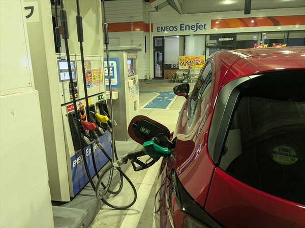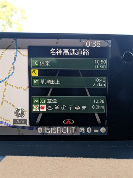 熊本県「ミルクロード入口」から草津PAまでは約780km。燃費はリッター25.1kmで、燃料計は残り1/3程度……。あと400kmしか走れないといいます。往路と全然違う展開です。