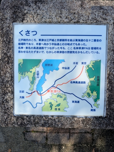 起きてクルマを走らせると、名神高速道路・草津パーキングエリアに近づいていることが判明。「草津PAでお風呂に入ろう」と思い立ち寄ることにしました。草津は宿場町だったそうですが、PAに入浴施設はなく。そう、草津温泉があるのは群馬県。滋賀県の草津PAにあるのはコインシャワーです。
