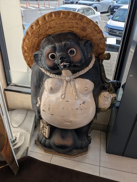 その代わりと言っては何ですが、信楽焼の産地が近いそうで狸の置物がお出迎え。「クルマで来ているし、縁起物の狸でも買おうかな」と思ったのですが、売っていませんでした。