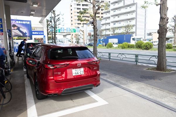 そこでオートポリスに行く用事があったことを良いことに、CX-60のe-SKYACTIV D 3.3を借用。リッター20kmで燃料タンク容量58Lなら、東京~オートポリスまでの1200kmを無給油で走り切れるだろう、と思ったわけです。
