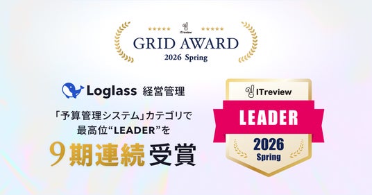 株式会社ログラス(本社:東京都港区、代表取締役 執行役員CEO:布川 友也、以下 「当社」)は、B2B向け IT製品/SaaSのレビュープラットフォーム「ITreview」が顧客満足度の高い製品を表彰するITreview Grid Award 2026 Springにて、クラウド経営管理システム「Loglass 経営管理」が、「予算管理システム」カテゴリで最高位の「Leader」を受賞したことをお知らせいたします。2024 Springから連続して9回目の受賞となります。
