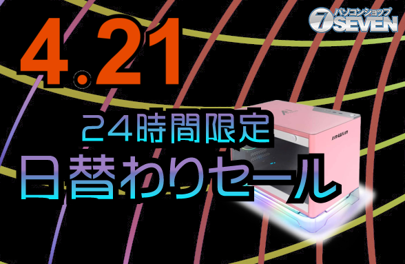 セブンアールジャパンは、4月21日に24時間限定セールを開催し、最新のゲーミングPCやデスクトップPCを大幅な割引価格で提供する。人気製品の「ZEFT Z55CC」や「ZEFT R67Q」、そして「ZEFT Z57E」などが特価で登場する予定だ。