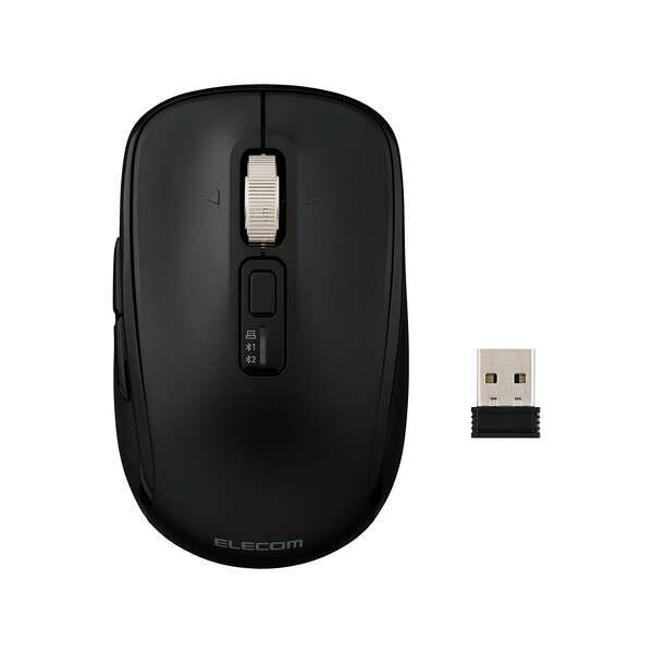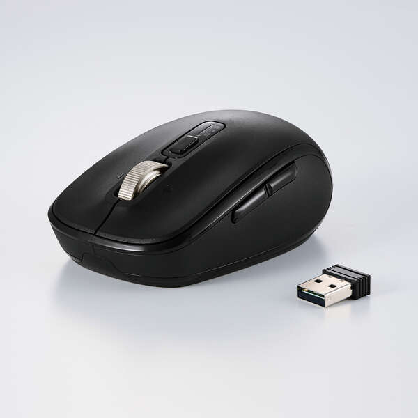 最大3台の機器に接続できるマルチペアリング対応で、パソコンのUSB-Aポートにレシーバーを挿す無線2.4GHz接続(1台)と、Bluetooth接続(2台)の接続先を本体上部のスイッチで切り替え可能。底面ではなく上面に切り替えスイッチがあるのが利点で、自宅ではパソコン、外ではタブレットなど、複数のデバイスを頻繁に切り替え利用するユーザーにおすすめだ。