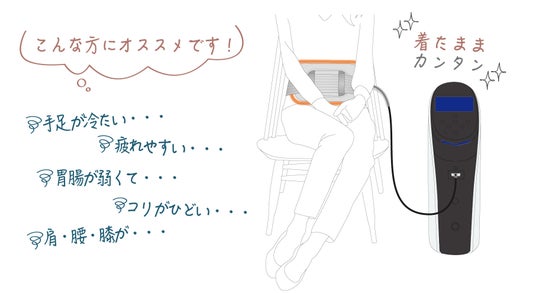 身体の深部まで温める「超短波」と、マイナス電子が作用する「負電荷」の2つの機能を搭載。