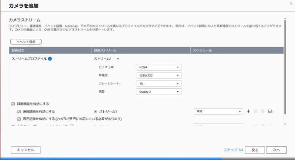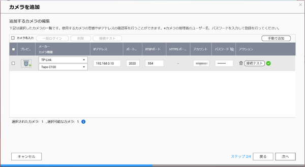 注意点としては、カメラ側のアプリであらかじめアカウントとパスワードを設定しておくこと。ONVIF 規格に対応したIPカメラであれば、設定できるはずだ。