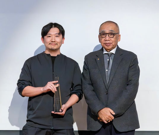 本コンテストは、新宿区による伴走支援型ビジネスプランコンテストとして実施されています。授賞式では、東京商工会議所新宿支部会長であり、株式会社新宿高野代表取締役である高野吉太郎様より、最優秀賞のトロフィーを直接授与いただきました。