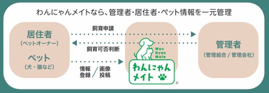 わんにゃんメイト(R)は、ペット飼育申請およびペットの飼育状況をオンライン化とペーパーレスで一元管理することで、管理会社や管理組合での管理業務を大幅に削減することができる新サービスです。