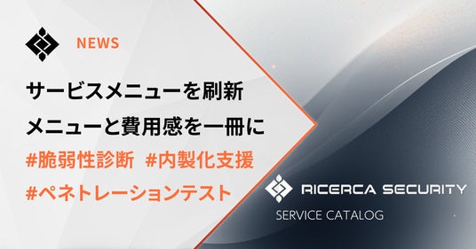 株式会社リチェルカセキュリティは、提供サービスの整理・体系化を行い、サービスメニューを刷新しました。 これまで個別に提供してきた実績をもとに、脆弱性診断やペネトレーションテスト、伴走支援、研究開発などを一貫したサービスとして再構成しています。