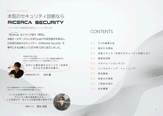 DEFCON CTFファイナリストや、国内外の研究機関でセキュリティ技術の研究開発に取り組んできたメンバーが在籍する株式会社リチェルカセキュリティは、提供サービスの整理・体系化を行い、サービスメニューを刷新いたしました。