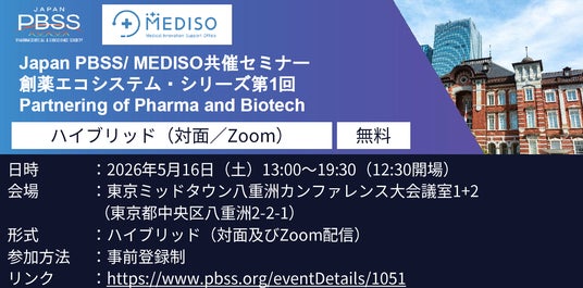 製薬企業とバイオテックの連携を探る――Japan PBSS/MEDISO共催セミナーを5月16日開催
