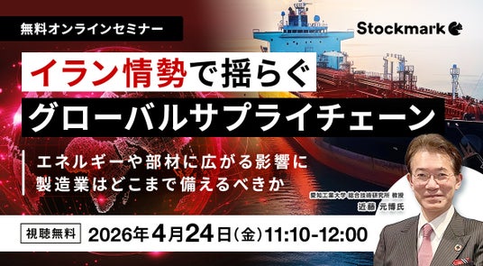 【4月24日(金) 無料セミナー】『イラン情勢で揺らぐグローバルサプライチェーン ― エネルギーや部材に広がる影響に製造業はどこまで備えるべきか』(ストックマーク主催)