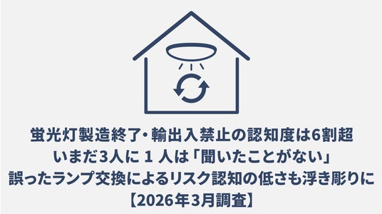 蛍光灯製造終了・輸出入禁止の認知度は6割超。いまだ3人に1人は「聞いたことがない」――誤ったランプ交換によるリスク認知の低さも浮き彫りに【2026年3月調査】