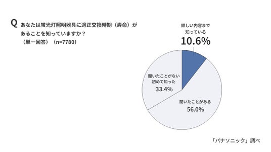 3人に1人が照明器具には「適正交換時期(寿命)がある」ことを「聞いたことがない、初めて知った」と回答。「詳しい内容まで知っている」はわずか10.6%。