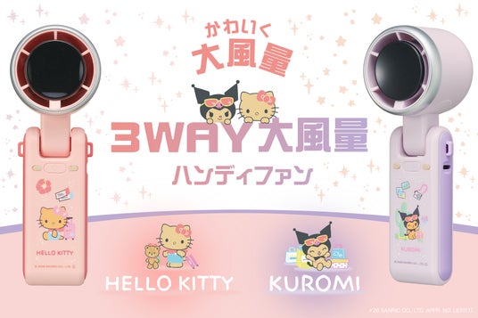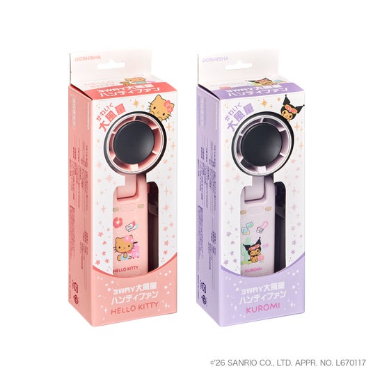 生活関連用品の企画・開発・販売を行う株式会社ドウシシャ(大阪本社:大阪市中央区、代表取締役社長:野村 正幸、以下 ドウシシャ)は、株式会社サンリオ(本社:東京都品川区、以下 サンリオ)の大人気キャラクター「ハローキティ」と「クロミ」がデザインされた扇風機「3WAY大風量ハンディファン」を2026年4月下旬よりドウシシャの公式オンラインストア「ドウシシャマルシェ」や全国の量販店、サンリオショップなどを通じて発売します。