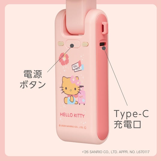 本製品は、ハンディ・首かけ・卓上と3WAYで使用できるハンディファンです。高速モーター搭載でパワフルな風を感じられるため、夏の暑さ対策に最適です。サンリオの人気キャラクターである「ハローキティ」と「クロミ」が夏らしく日焼けしたデザインとなってハンディファンに登場。暑い夏のお出かけを、可愛く演出します。