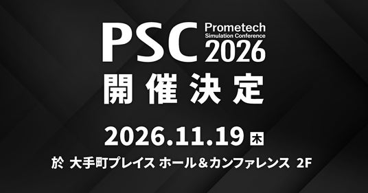 このたび、プロメテック・ソフトウェア株式会社(本社:東京都文京区、代表取締役社長 兼 CEO 鈴木 崇彦)は、2026年11月19日(木)に「Prometech Simulation Conference 2026(以下、PSC2026)」を開催することをお知らせいたします。会場をアクセス性に優れたビジネスの中心地、東京・大手町の「大手町プレイス ホール&カンファレンス」へ移し、これまで以上の規模で皆さまをお迎えいたします。