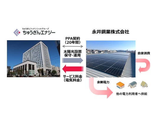 株式会社ちゅうぎんエナジー(岡山市 代表取締役 松岡 信一)は、永井鋼業株式会社(代表取締役社長 永井 浩)と太陽光PPA(※)サービス契約にもとづき太陽光発電設備を設置し、再エネの供給を開始いたしましたのでお知らせいたします。