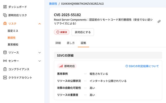 また、認証なしでアクセス可能なAWS Lambda関数については、SSVCに基づいて「即時対応」リスクとして優先度を判定することが可能となりました。
