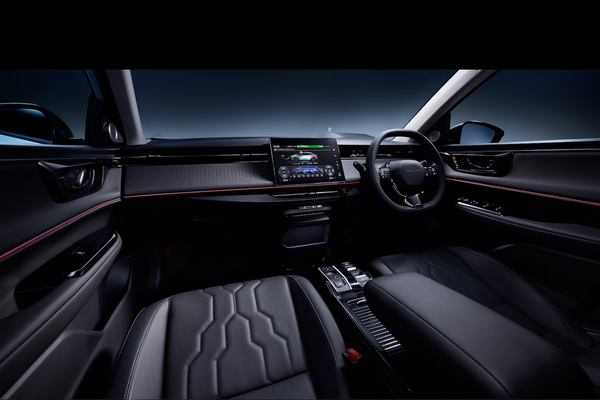 外観はクロスオーバーSUVらしいボディ骨格と未来感のある造形を特徴とし、室内は包み込むようなラウンドデザインを採用。上質なソフトパッド素材に加え、インパネやドアの造形に沿ってLEDアンビエントランプを備えることで、どこに座っても一体感のある上質な空間を目指したとしている。