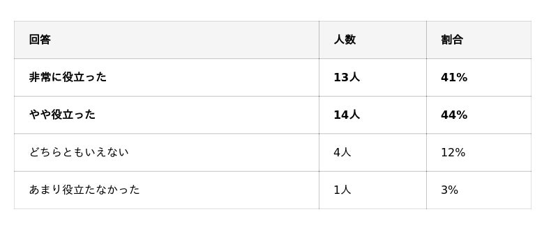 「役立った」計:27名(84%)