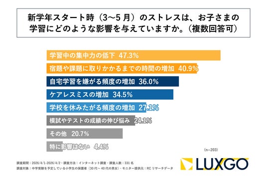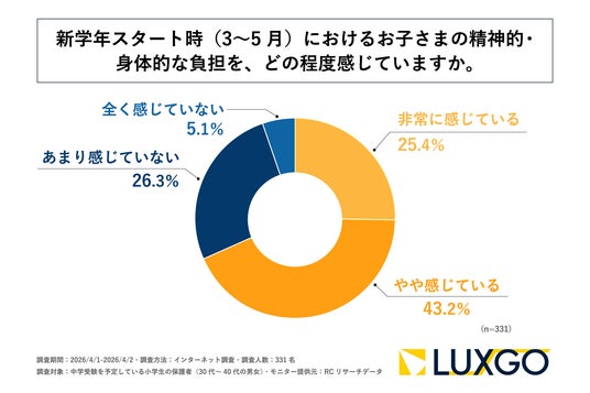 中学受験を予定している小学生の保護者の6割以上が、新学年スタート時に子どものメンタル不調のサインを感じることがあると回答!LUXGO株式会社が「中学受験家庭の新学年ストレスに関する調査」を実施!