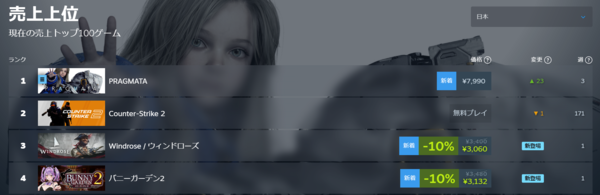 【爆売れ】「プラグマタ」「ウィンドローズ」Steam上位独占 売上100万本超えヒット