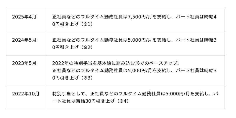ー正社員一律12,500円引き上げ、初任給255,000円へー