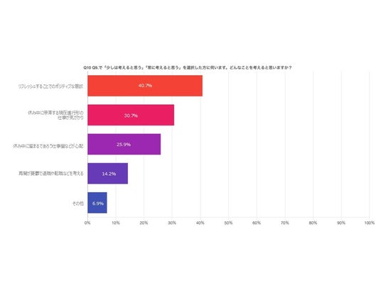 一方で、休暇中も仕事から完全に離れられない状況や、将来のキャリアを考えるきっかけになっている実態も見えてきました。
