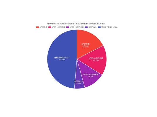 GWにかける予算については、「特別な予算はかけない」が48.7%と最多となりました。